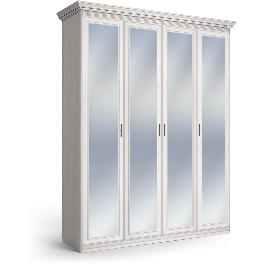 Шкаф 4-х дверный с зеркальными и глухими дверями Неаполь Ясень анкор светлый (патина "серебро")